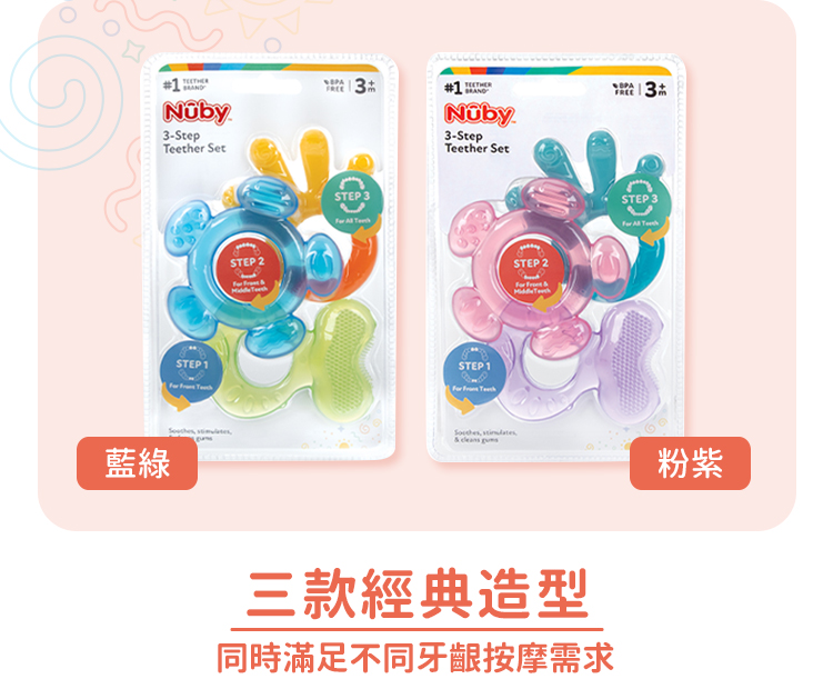 Nuby|固齒器三階段組(藍綠/粉紫)