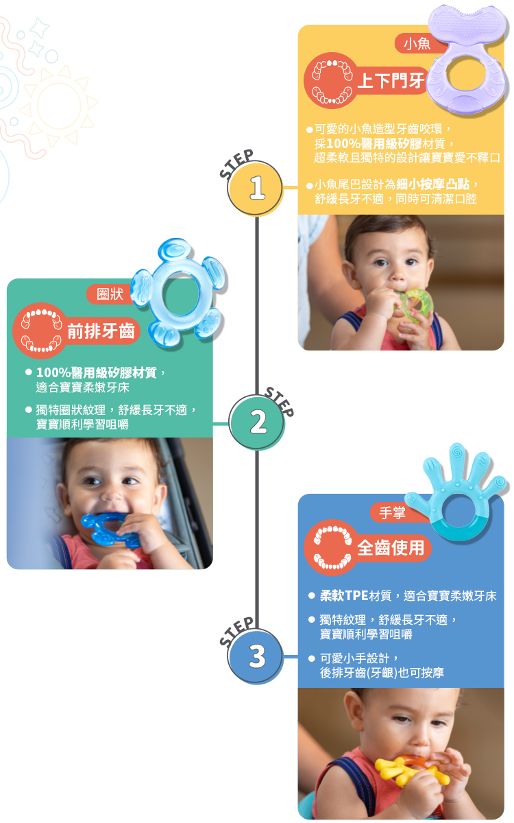 ✅柔軟細顆粒的前端細緻紋理,適合剛開始長出門牙的寶寶